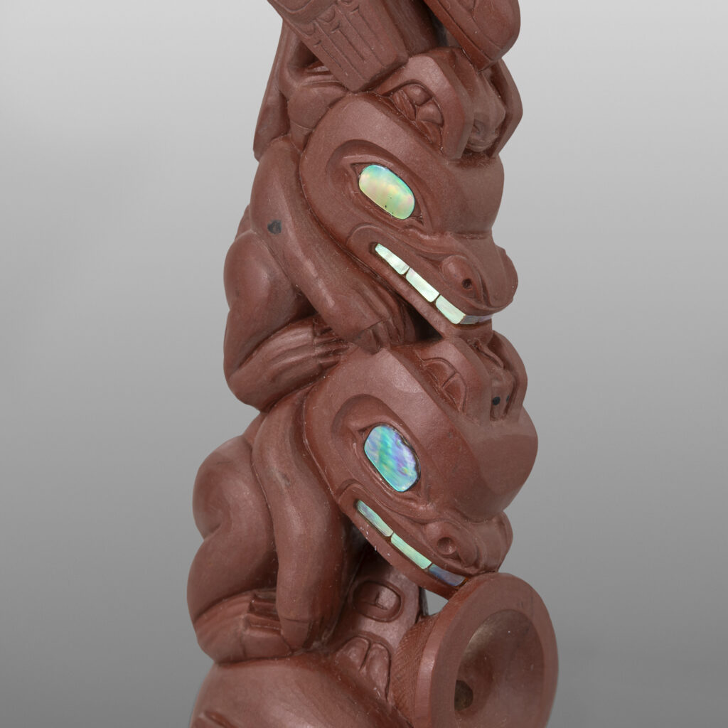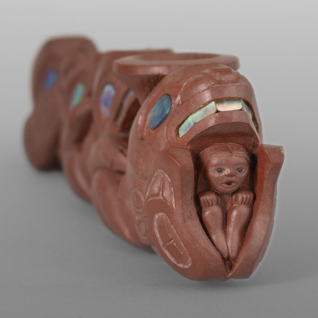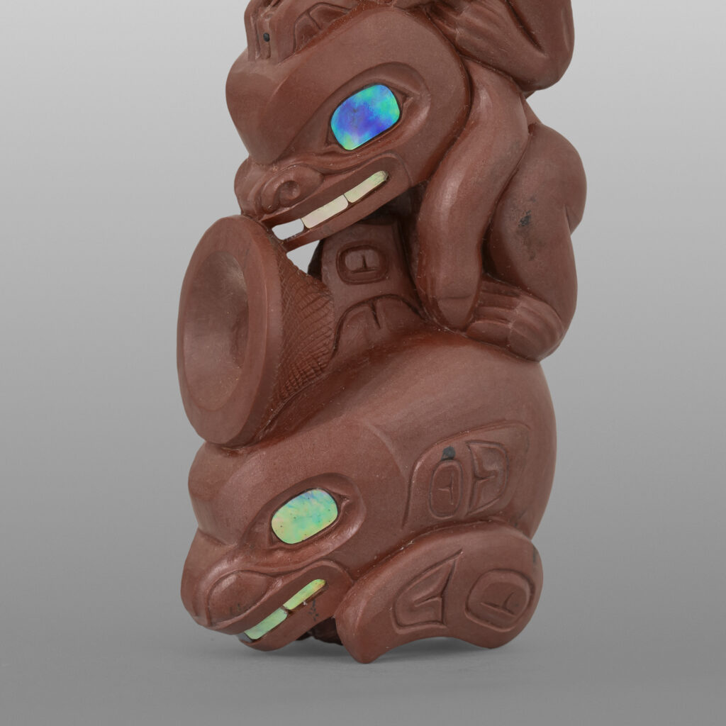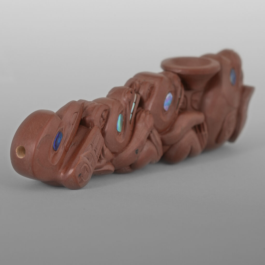 Four West Coast Clans Pipe(Raven, Wolf, Bear, Killerwhale)Gary Olver Woodland CreeCatlinite, abalone, bone, custom stand 5¼” x 1½” x 1” (3" with stand)8,500 About Gary Olver More Works by Gary Olver The Messengers PipeGary Olver7,400 Four West Coast Clans PipeGary Olver8,500 Wolf, Beaver & Eagle PipeGary Olver4,500 Giant Pacific Octopus BoxGary Olver8,800 Great Northern Owl BoxGary Olver6,500 Salmon Fishing PendantGary Olver2,900 Halibut Fishing PendantGary Olver3,200 Perched OwlGary Olver2,800 Playing OttersGary OlverSold Raven Chief PendantGary Olver2,800